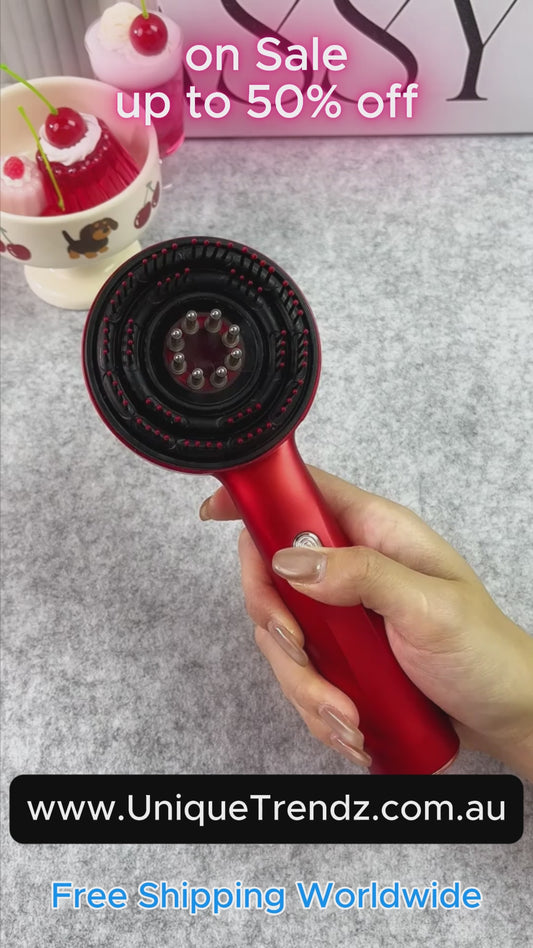 Microcurrent Scalp Massager Comb – Red Light Therapy, Vibration Massage & Oil Applicator for Hair Growth